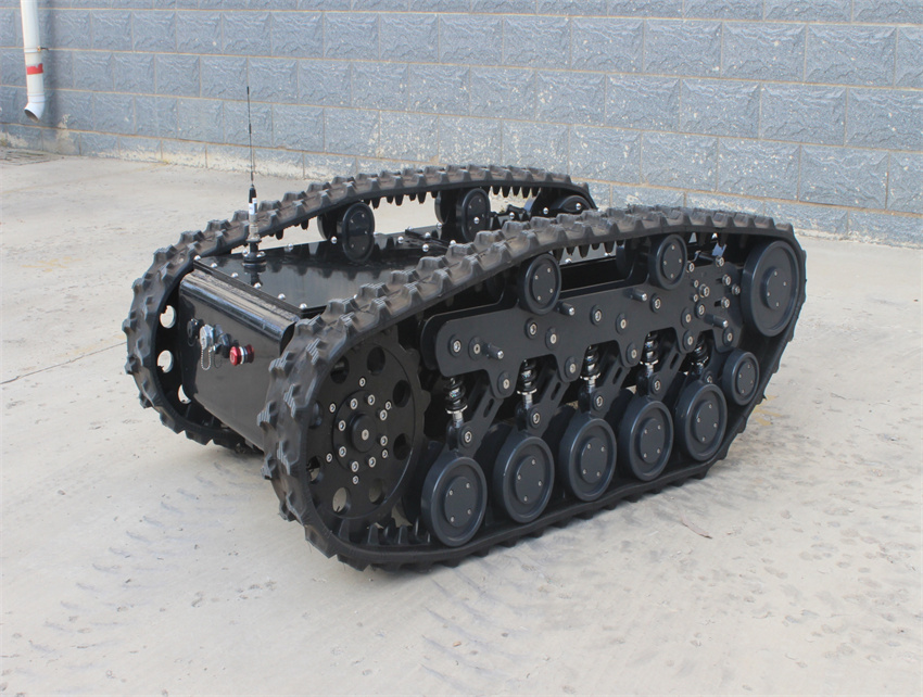 獨特的履帶懸掛防護系統(tǒng),更好的適應(yīng)惡劣路況,避免砂石、灰塵進入潤滑軸承,提高壽命;插齒式驅(qū)動輪結(jié)構(gòu),使得驅(qū)動輪與履帶緊密咬合,避免履帶與驅(qū)動輪的脫落。防護型懸掛系統(tǒng)配合插齒式驅(qū)動輪系大大提升了履帶式行走系統(tǒng)在復(fù)雜惡劣環(huán)境的適應(yīng)性