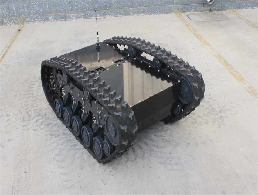 獨特的履帶懸掛防護系統(tǒng),更好的適應(yīng)惡劣路況,避免砂石、灰塵進入潤滑軸承,提高壽命;插齒式驅(qū)動輪結(jié)構(gòu),使得驅(qū)動輪與履帶緊密咬合,避免履帶與驅(qū)動輪的脫落。防護型懸掛系統(tǒng)配合插齒式驅(qū)動輪系大大提升了履帶式行走系統(tǒng)在復(fù)雜惡劣環(huán)境的適應(yīng)性